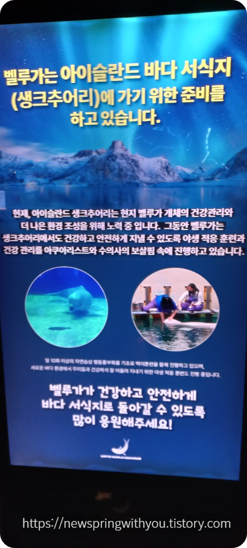 벨루가 수조 앞에는 위와 같은 글이 게재되어 있었다.